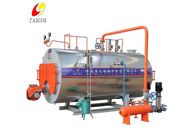 1、燃油(氣)鍋爐本體設(shè)計(jì)為全濕背式三回程煙火管結(jié)構(gòu)、火焰在燃燒室內(nèi)微正壓燃燒、燃燒充分、爐膛熱負(fù)荷低、氮氧化合物排放量少。 2、燃油(氣)鍋爐采用波形爐膽及螺紋煙管結(jié)構(gòu)、既提高了強(qiáng)度又強(qiáng)化了傳熱效果。 3、燃油(氣)鍋爐水容積及蒸汽儲(chǔ)存空間大、負(fù)荷調(diào)節(jié)范圍大。合理的爐內(nèi)裝置、保證了蒸汽品質(zhì)。 4、燃油(氣)鍋爐采用了新型隔熱保溫材料、重量輕、保溫性能好。 5、燃油(氣)鍋爐水位控制器采用不銹鋼作為電極棒、聚四氟乙烯作為絕緣材料、性能可靠、使用壽命長(zhǎng)。 6、燃油(氣)鍋爐前后煙箱為鉸鏈連接、檢修維護(hù)方便快捷。